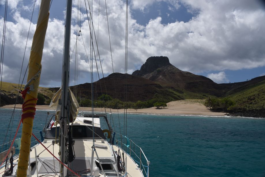 Le lendemain matin, après avoir démêlé la chaîne de mouillage prise dans les rochers, nous rejoignons, toujours bout au vent (force 5/6 et vagues de 2/3 mètres), les mouillages de Hane et la baie de Vaipaee sur la côte Sud avec l’idée de descendre à terre.