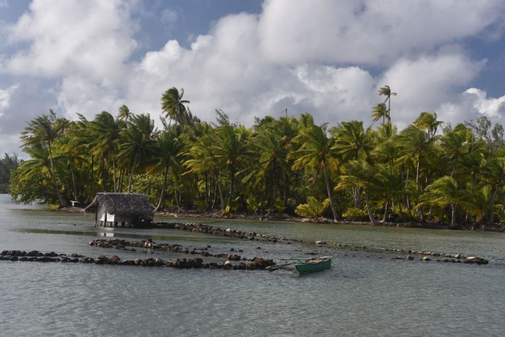 Plus tard, à vélo, nous visitons un important site archéologique au Nord-Est de l’île. Plusieurs « marae », lieux de culte des anciennes chefferies, disséminés entre un bras de mer et la montagne, rappellent la culture ancestrale des polynésiens. Des pièges à poissons en pierre, vieux de plusieurs siècles mais encore en très bon état, et encore utilisés, sont visibles à la sortie du bras de mer. Un peu plus bas, à l’Est, se trouve l’unique ferme perlière de l’île.