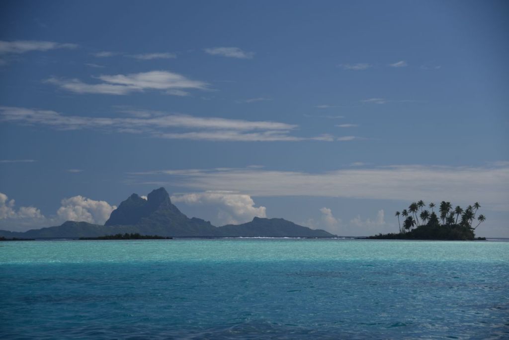 De Tahaa nous avons une très belle vue sur Bora Bora, la perle des Îles sous le vent que nous rejoignons en quelques heures.