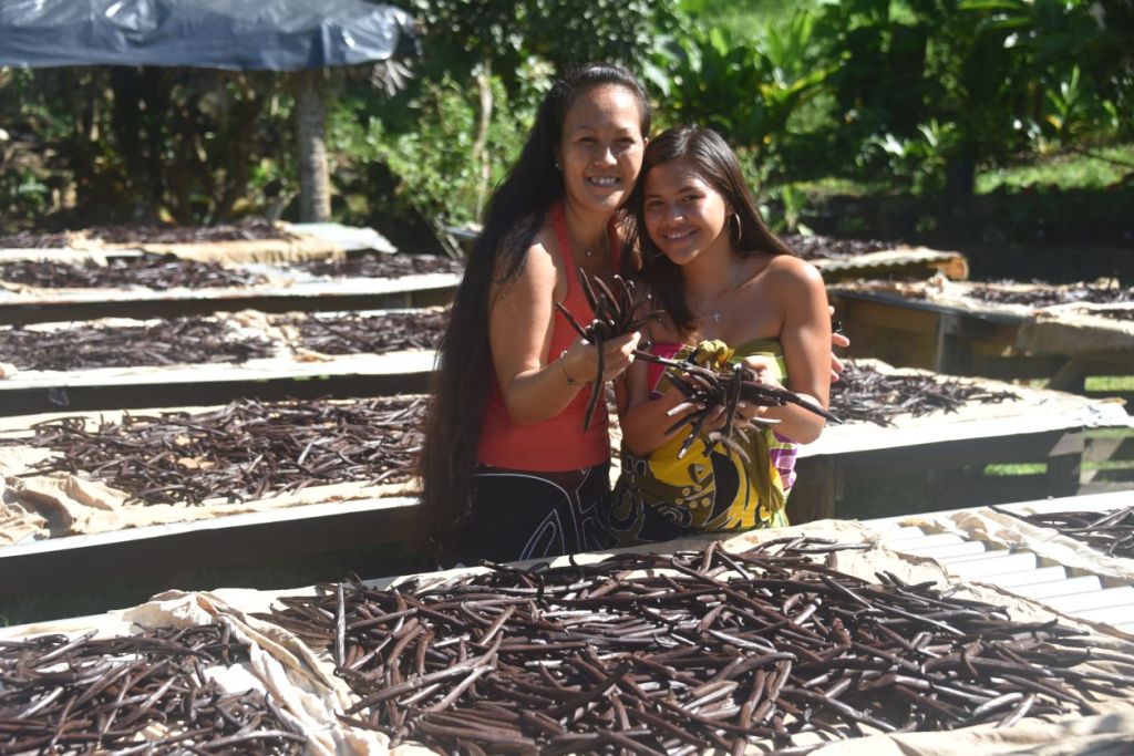 Plus loin nous découvrons la culture et le séchage de la vanille, spécialité de Tahaa.