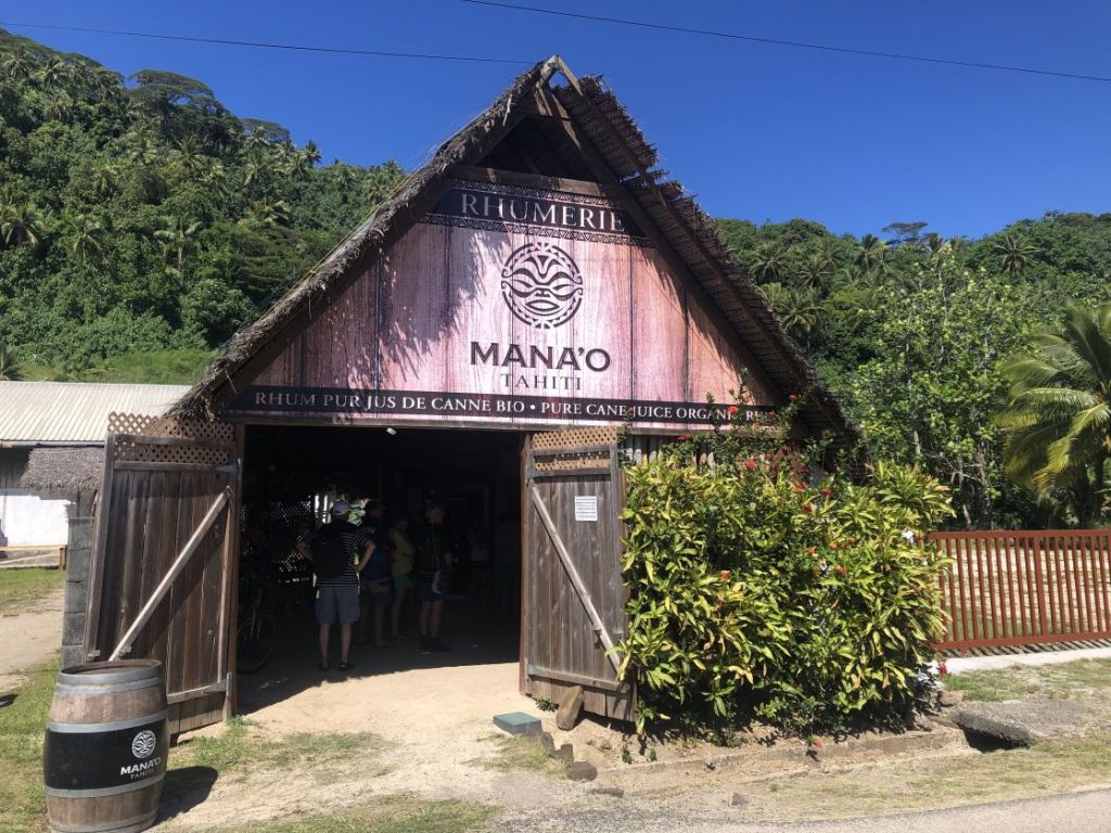Et pour terminer nous comparons les deux marques de rhum élaborées sur l’île. Le T, domaine Pari Pari, avec un mélange de canne à sucre de l’île et le Mana’o, également rhum agricole fermenté sur place et ensuite distillé à Tahiti. C’est bon, mais c’est pas pour être chauvin, ça ne vaut pas le rhum martiniquais !