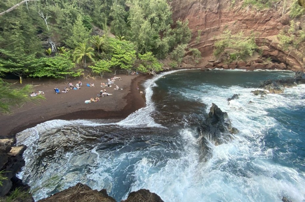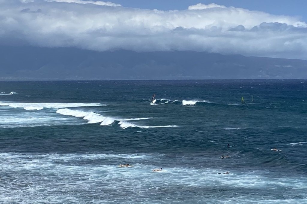 C’est donc un peu au pas de course que nous visitons ensuite Maui, 2ème île de l’archipel par sa population. Nous empruntons la magnifique route du Nord qui serpente en corniche dans une végétation luxuriante jusqu’au village « du bout du monde » de Hana. Nous admirons quelque temps les surfeurs sur le fameux site de Hookipa où viennent se mesurer en saison les meilleurs windsurfers du monde.