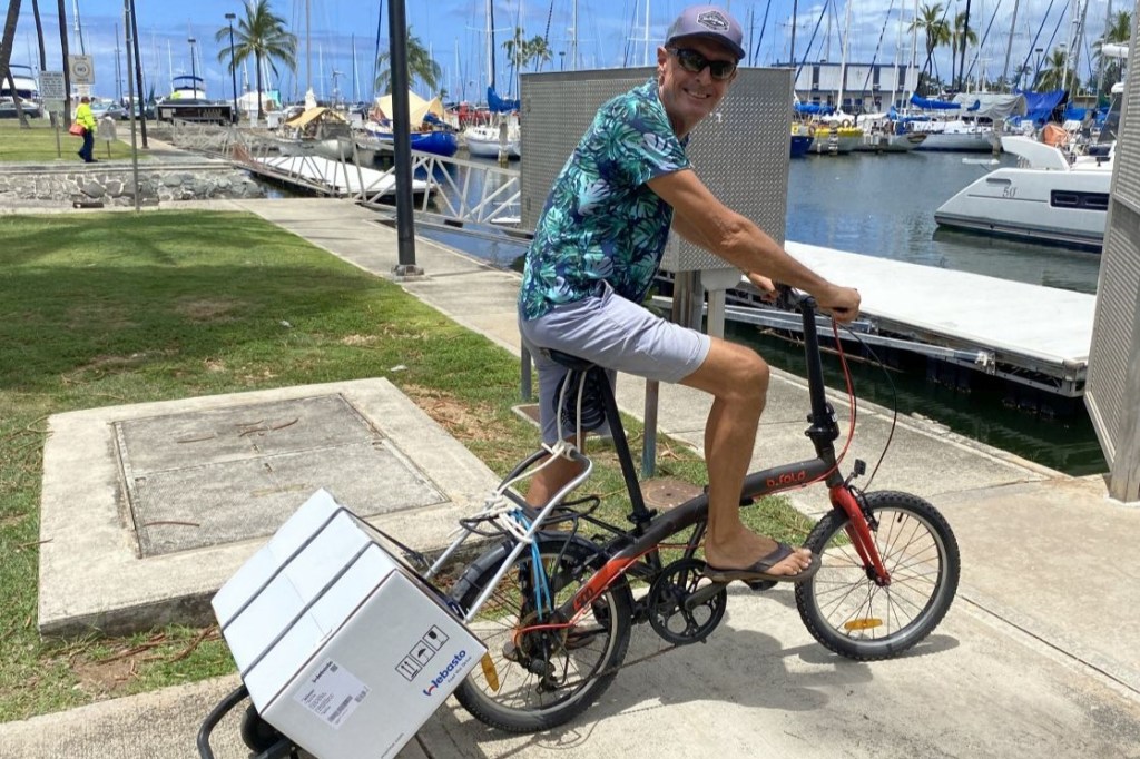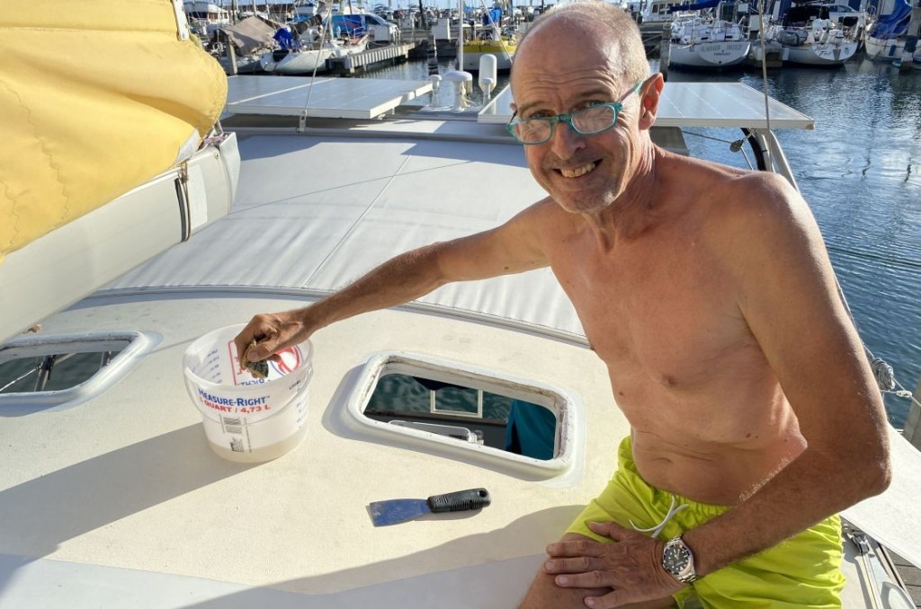 Pendant un mois, les journées sont en tout ou partie consacrées au bricolage, rdv, recherches et réflexions pour le bateau : installation du chauffage à air pulsé reçu via DHL (26 trous dans les boiseries pour alimenter les 2 cabines, la salle de douche et le carré), remise en ordre du circuit de gas-oil qui avait une prise d’air, révision de la pompe hydraulique du pilote, réfection de l’étanchéité de la capote et de ses panneaux, réparation du taud qui s’était déchiré pendant la traversée depuis les Marquises, vérification du gréement, vidange du moteur, bref… la liste est longue.