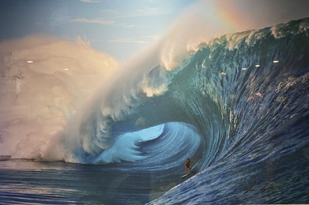Encore un canal agité et venté avant d’arriver à l’île d’Oahu, 3ème de l’archipel par sa superficie mais la principale par son développement touristique. Sitôt passé Diamond Head, volcan au SE de l’île, nous découvrons Honolulu, ses gratte-ciel et la fameuse plage de Waikiki avec ses nombreux surfeurs. Nous apprendrons ensuite que le surf y est tellement « sacré » que pendant les périodes de confinement Covid, c’était la seule activité extérieure autorisée.