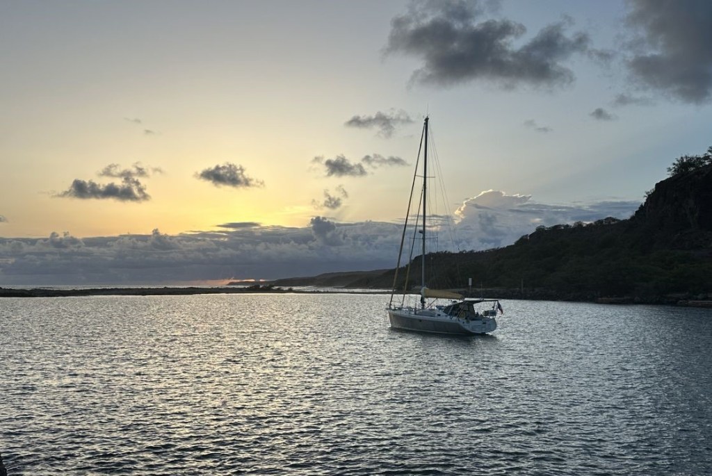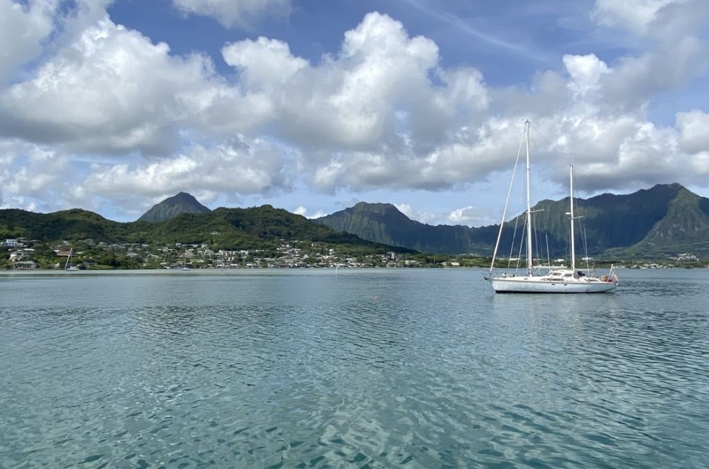 C’est à Hanalei Bay, notre dernier mouillage à Hawaï, que nous attendons une bonne fenêtre météo pour la traversée vers Kodiak, Alaska.