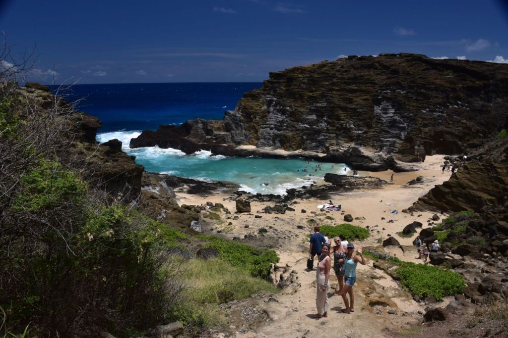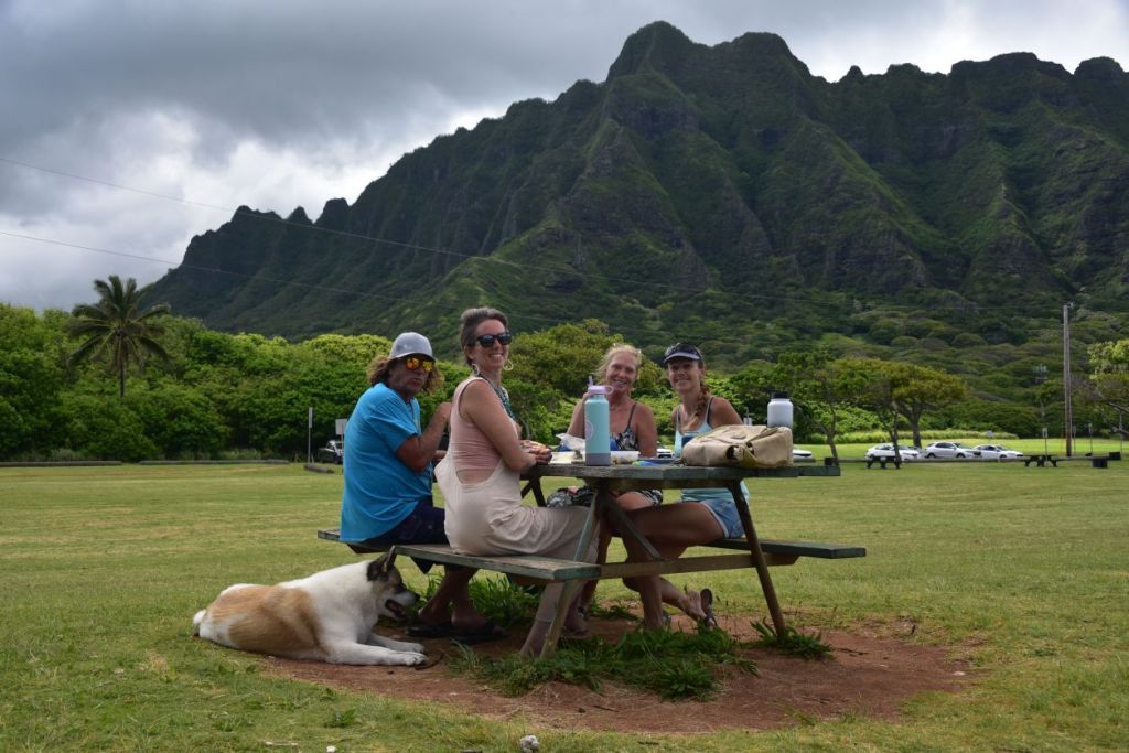 On se rend vite compte que Honolulu, ce n’est pas Oahu, mais une bulle dans Oahu. Avec ses 300.000 habitants, 1 million si l’on compte toute l’agglomération, et 5 millions de touristes par an… D’ailleurs les familles locales et les touristes ne se partagent pas les mêmes endroits !
