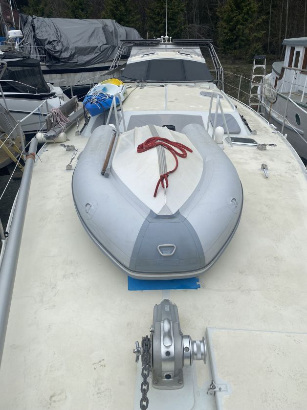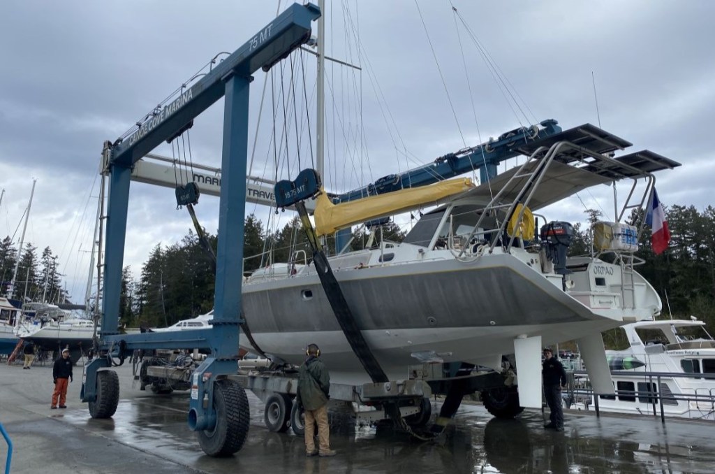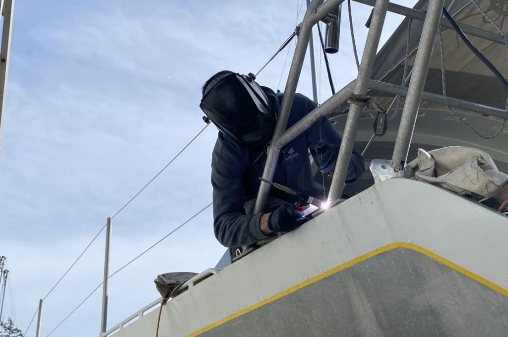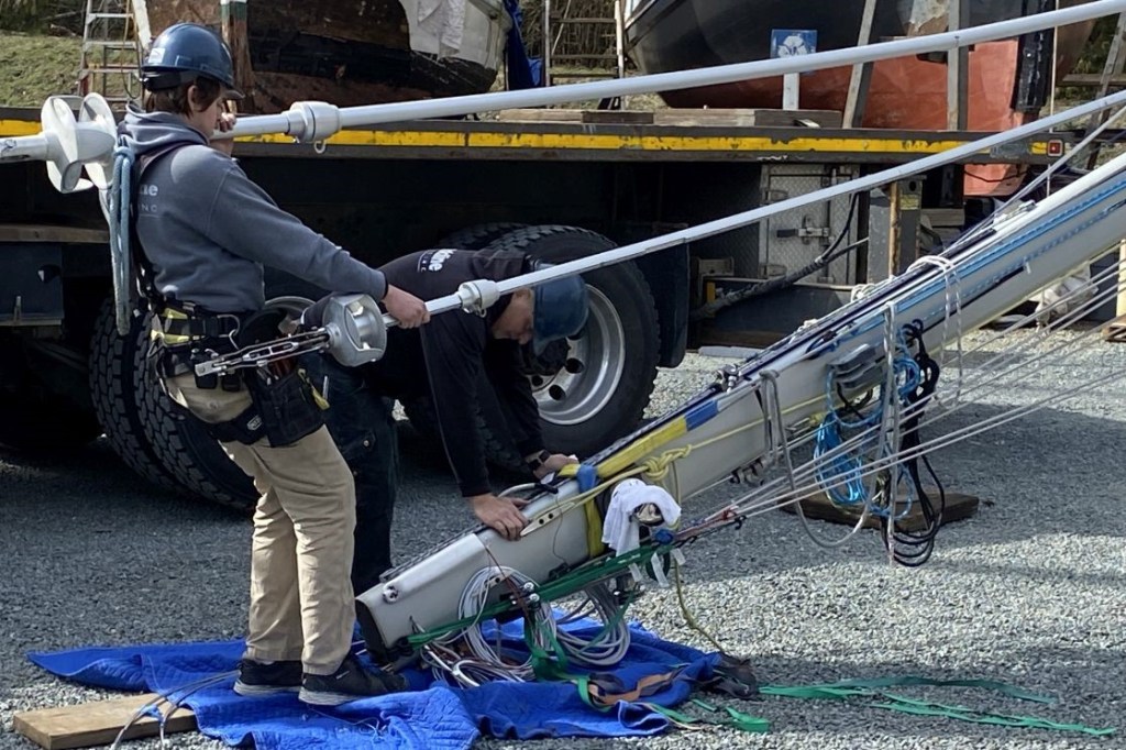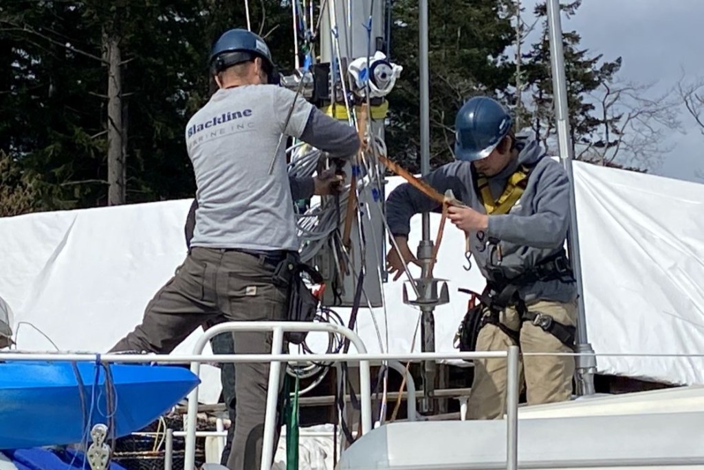 En plus du travail habituel (peinture sous-marine, révision des moteurs, remise en place des voiles et de l’accastillage), nous devons faire réparer le chauffage, installer de nouvelles batteries et de nouveaux panneaux solaires (juste remplacer celui arraché lors d’une tempête en août dernier en Alaska est impossible), remplacer les antennes GPS défectueuses, installer Starlink, réviser le dessalinisateur, faire réparer la grand-voile et le génois, et réviser le moteur hors-bord bloqué… De plus, nous avons décidé de démâter pour faire remplacer le gréement dormant qui a 20 ans (et surtout plus de 40.000 miles nautiques!) et refaire les câblages électriques à l’intérieur du mât.