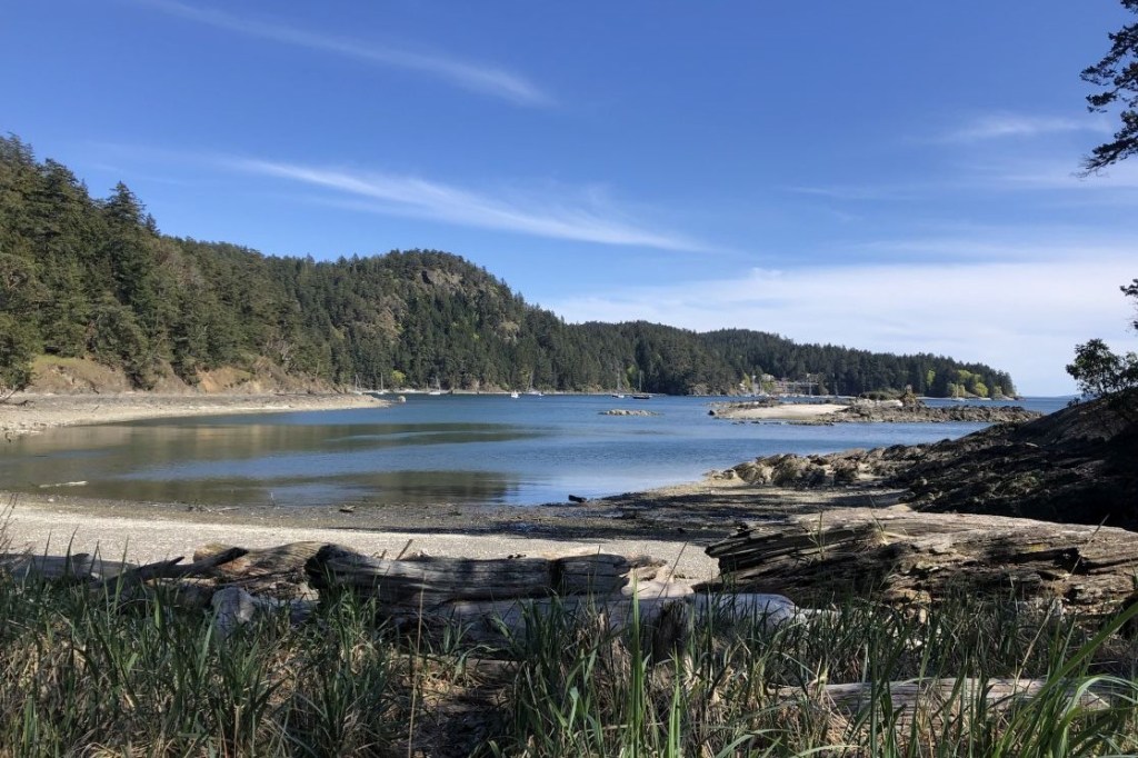 Durant le mois d’avril, nous sillonnons les Gulf Islands à l’abri des dernières, enfin on l’espère, dépressions hivernales. Le temps est très changeant. Il fait encore froid, il pleut beaucoup et de temps en temps une belle journée de soleil nous rappelle que le printemps arrive. Chaque escale est prétexte à une rando et chaque île est différente, certaines habitées et très grandes, d’autres minuscules et désertes.