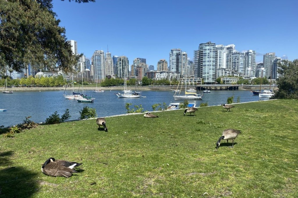 Malgré tout, la situation est idéale pour visiter la ville. Vancouver est une ville très verte, avec beaucoup de parcs et de nombreuses pistes cyclables, et c’est l’occasion de sortir les vélos pour de se dérouiller les jambes. Et par chance, cette première semaine du mois de mai, il fait beau.