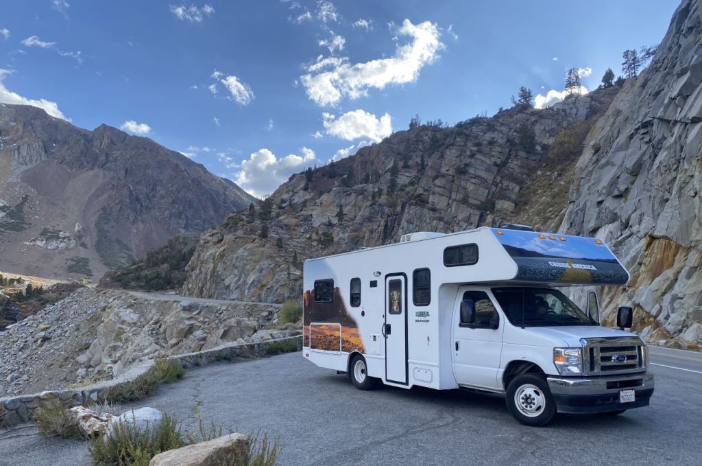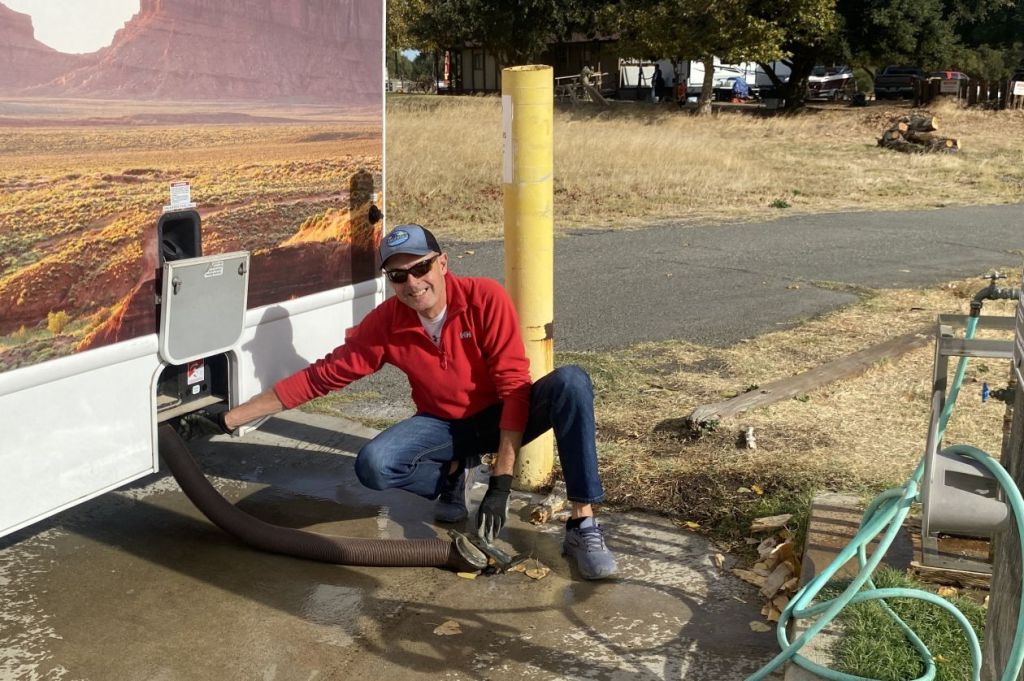 Nous sommes le 3 octobre, le camping-car est chargé, il est 15h00, il est temps de partir. Nous quittons le chantier tranquillement, traversant les vignobles de la Napa Valley, le temps de prendre en main notre nouveau véhicule. 7,6 mètres de long, 2,5m de large, 3,7m de haut, 5,2 tonnes, moteur Ford V8 7,3 litres 325 CV, boite automatique, la prudence est de rigueur notamment en ce qui concerne le gabarit et le poids. Premier arrêt chez Walmart pour un gros avitaillement comme en bateau afin d’être autonomes. Ensuite, après s’être extirpés de la circulation très dense autour de la Baie de San Francisco, nous nous arrêtons pour la nuit à Ripon au Sud-Est de la baie, sur le parking d’une grande station service ouverte 24/24. Défilé incessant de camions, ce sera notre plus mauvaise nuit.
