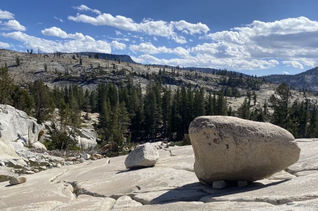 Cette route, comme la plupart des routes que nous allons emprunter lors de notre road trip, vaut à elle seule le déplacement. Un enchaînement de virages nous mène en altitude, la végétation change puis disparaît progressivement à l’approche du col puis la descente se fait dans un nouveau décor somptueux et à chaque fois différent. C’est l’occasion de faire de nombreux arrêts dont une pause barbecue prés du lac alpin de Tenaya lake.