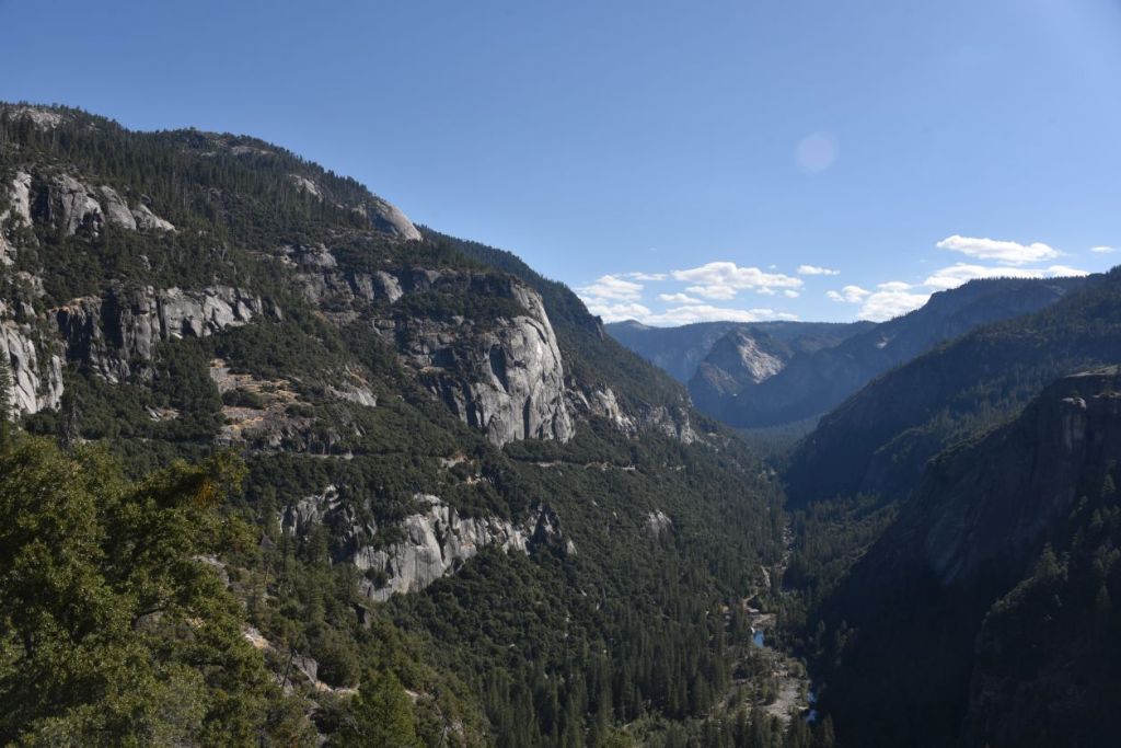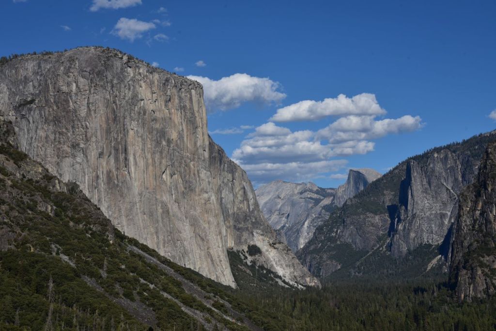 Yosemite est une ancienne vallée glaciaire entourée d’immenses parois de granit et de deux grands monolithes uniques au monde : El Capitan et le Half Dome, très prisés des alpinistes, avec au milieu la Merced River. Difficile d’imaginer qu’à la dernière époque glaciaire, les glaciers arrivaient au dessus de ces dômes et les ont arrondis…